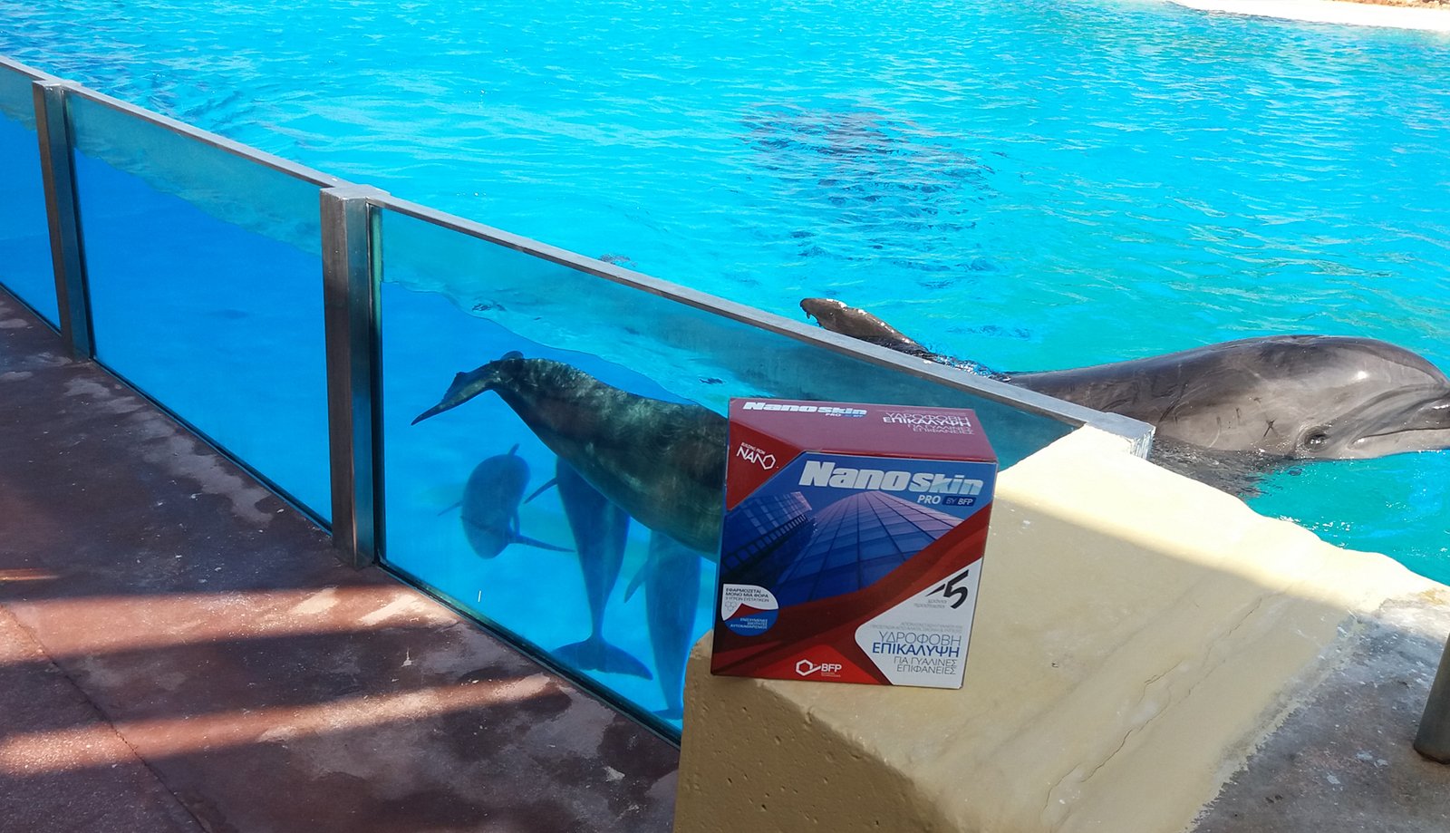 Finally, Mr. Sotiris Xafakis, Head of BFP’s Application Operations, mentioned: “The renovation process was really challenging. It provided huge cost savings from glass replacement. At the same time, the protective coating ensures that cleaning will be from now on a breeze, without the need of using desalinating products and toxic cleaners.” Then, he continued by noting: “Besides indisputable benefits for the spectators, the application of NanoSkin manifested the sensitivity of the Park’s management team on issues concerning the animals’ health. The easy to clean coating will minimize the use of chemicals, which may be dangerous to the health of dolphins, while it will contribute to the protection of the environment.”